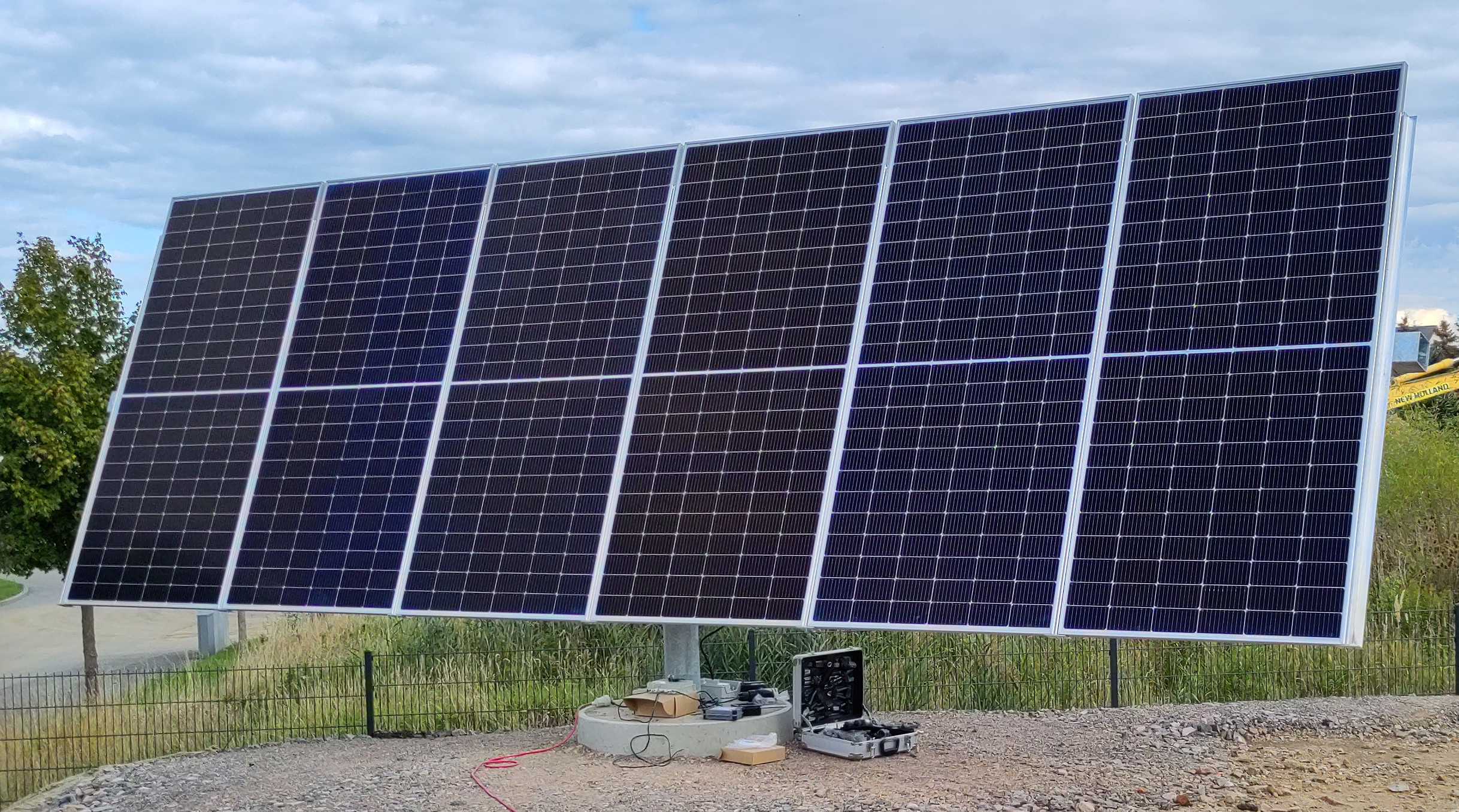 An eine stabile verzinkte Stahlkonstruktion werden Alu-Profile angeschraubt, auf die bis zu 6 PV-Module á 540W in einer Reihe vertikal aufgeschraubt werden. Dadurch ergibt sich eine Gesamthöhe von weniger als 3m. Das ist einerseits günstig für die Montage und andererseits baugenehmigungsfrei.